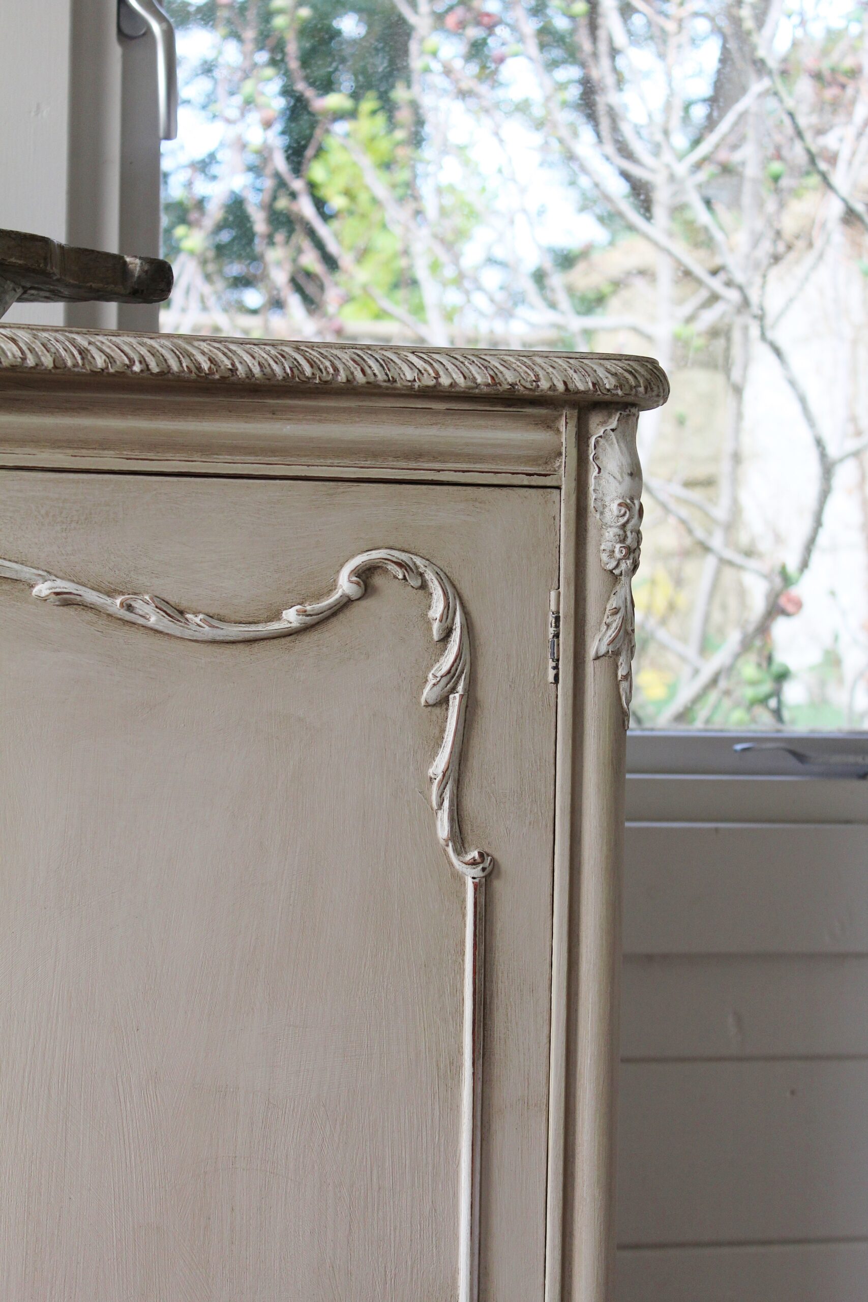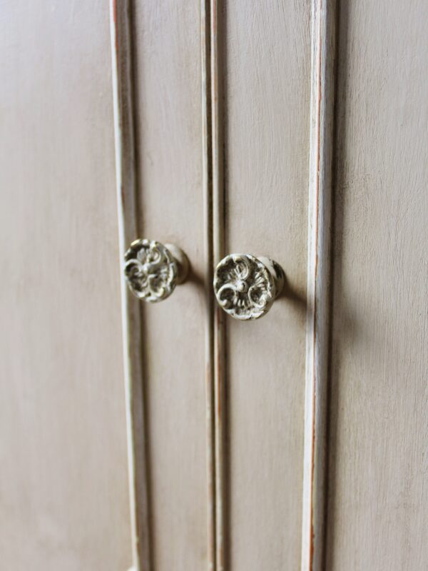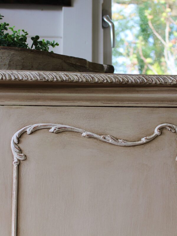 THIS GORGEOUS PIECE OF FURNITURE HAS BEEN HAND PAINTED, AGED AND ANTIQUED TO SIMULATE AN APPEARANCE OF AGE OLD PERFECTION AND USAGE. TECHNIQUES BORNE OUT OF YEARS OF EXPERIENCE, PRACTICE AND EXPERIMENTATION IN PAINTING FURNITURE TO THE HIGHEST STANDARDS. THE WONDERFUL PATINATION NOW CREATED ON THIS PIECE IS WONDERFULLY TACTILE TO THE TOUCH AND ADDS A DEPTH OF CHARACTER SYNONYMOUS WITH RUSTIC CHARM. ALL MY PIECES OF A MORE “RUSTIC PAINTED” NATURE AND SUBTLE NEUTRAL COLOUR, PERFECTLY COMPLIMENT THE EASY RELAXED INTERIORS OF TODAY’S COUNTRY STYLE HOMES. I PERSONALLY LOVE THE WELL WORN, LIVED WITH, HONEST FUNCTIONALITY OF THESE PIECES AS WELL AS THE ELEGANT TRADITIONAL CHARM OF THE TYPE OF INTERIOR IN WHICH THEY ARE RENOWNED. ——————————-