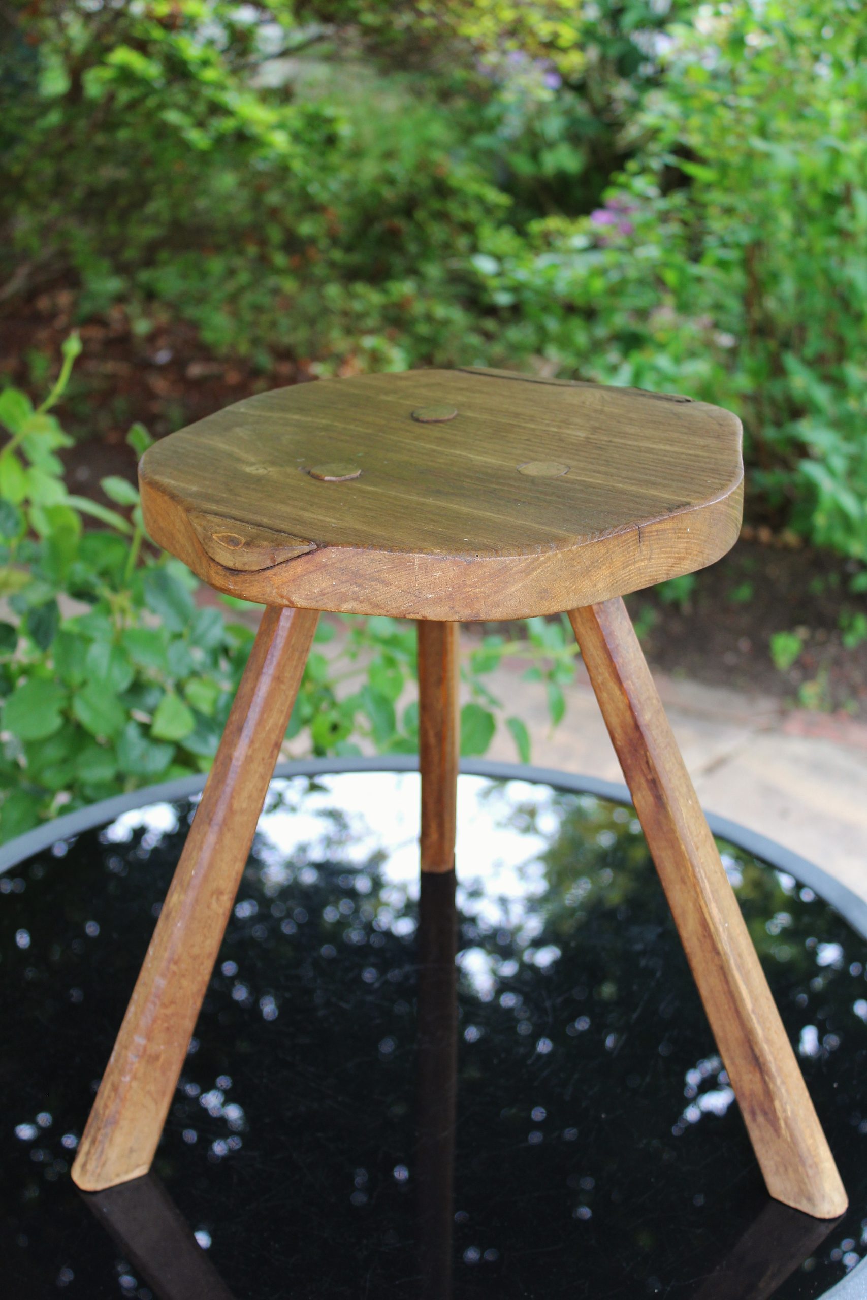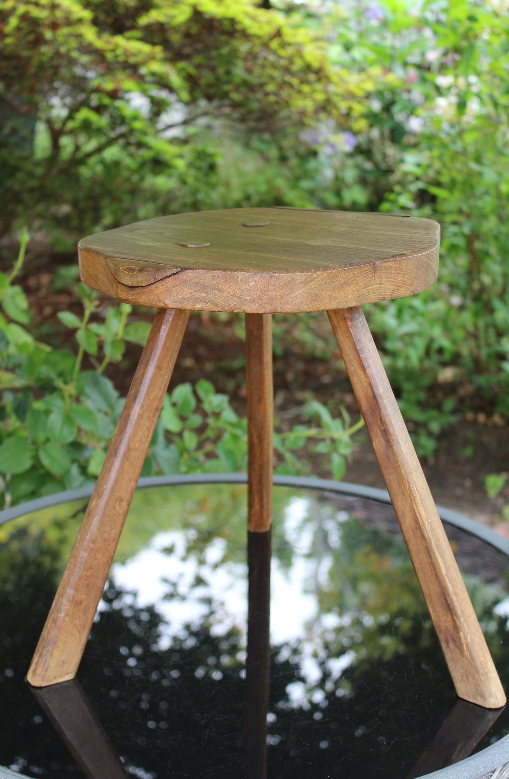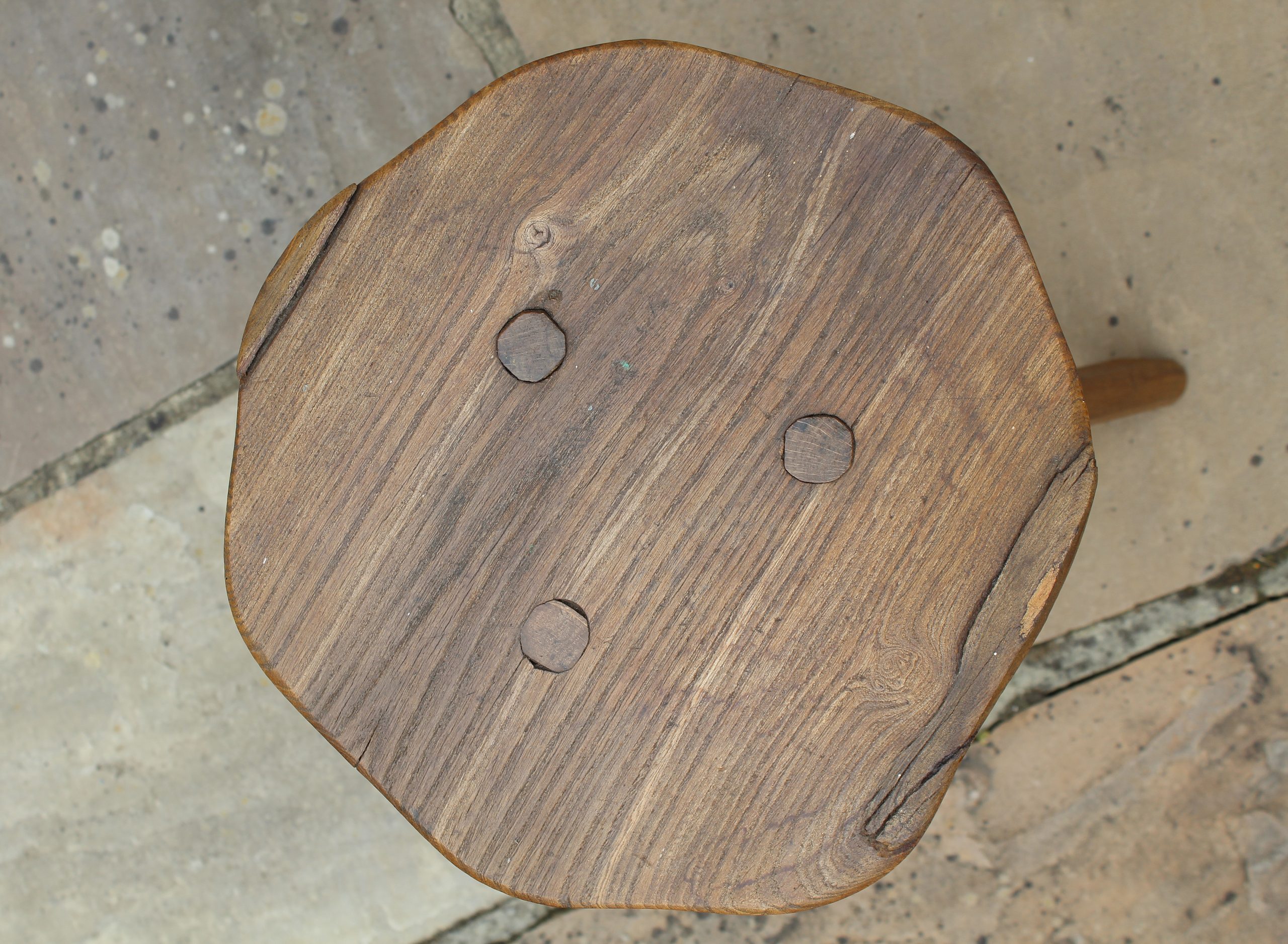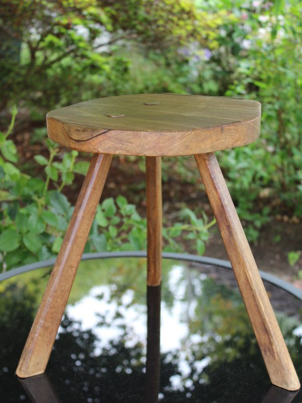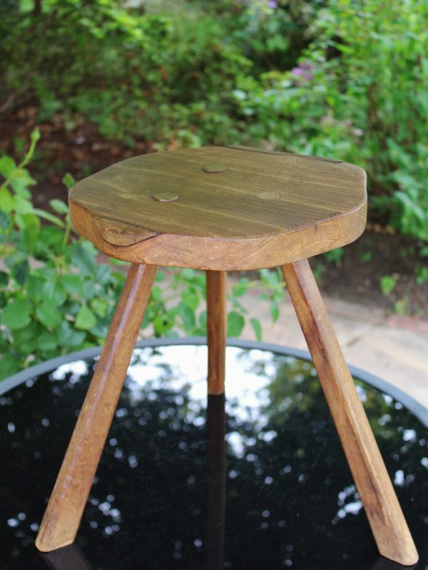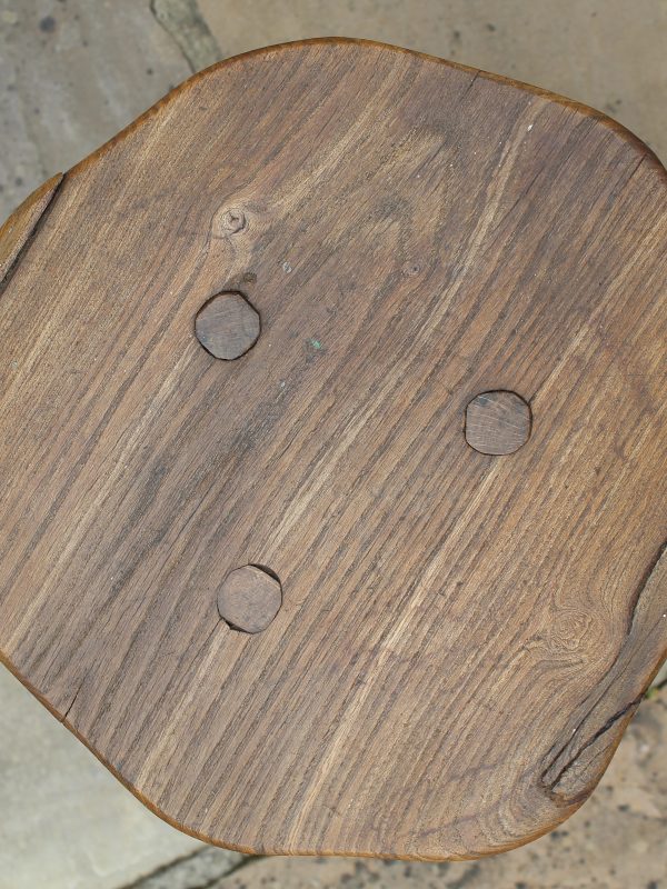 EARLY ANTIQUE PRIMITIVE ENGLISH WALNUT 3 LEGGED STOOL