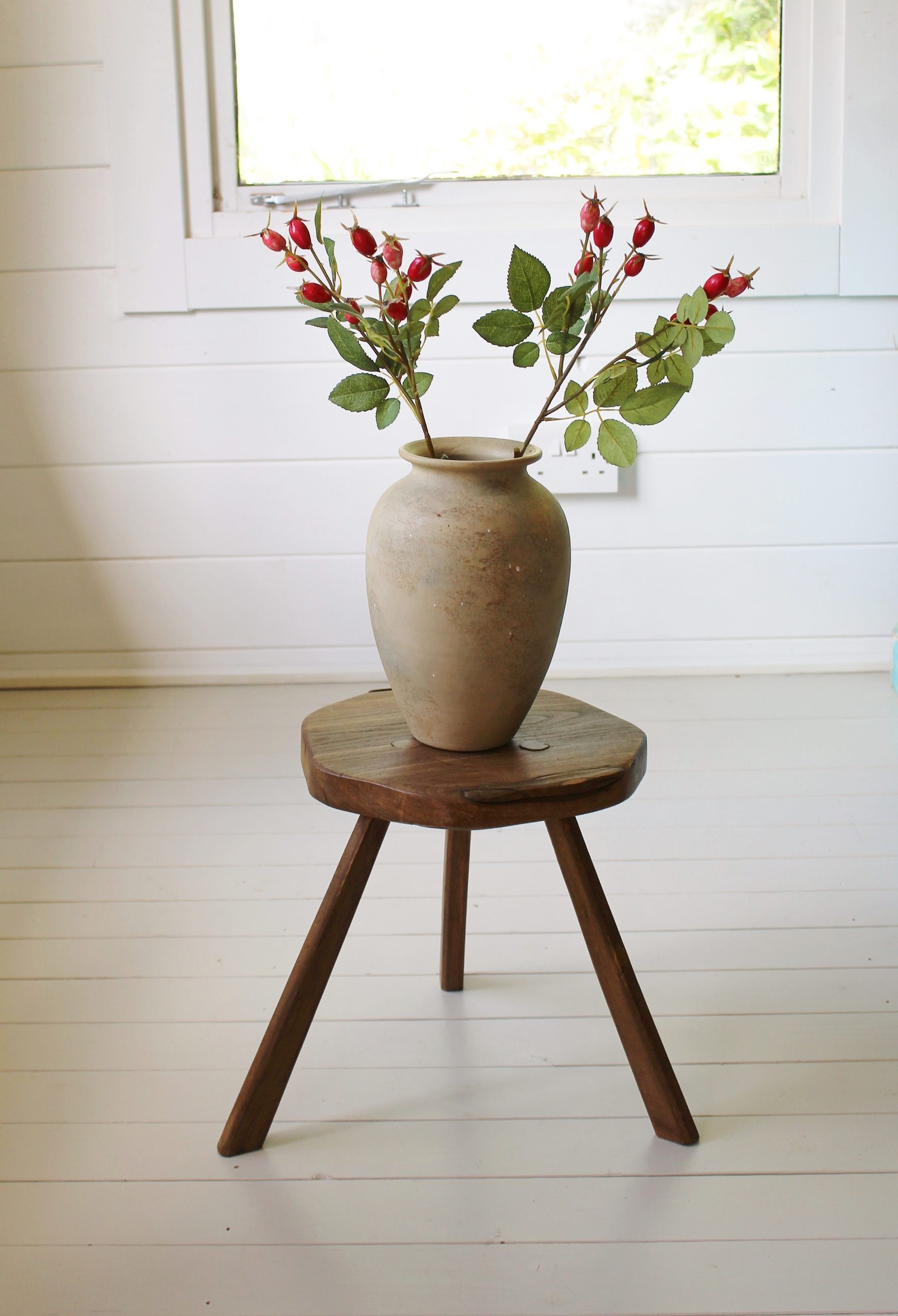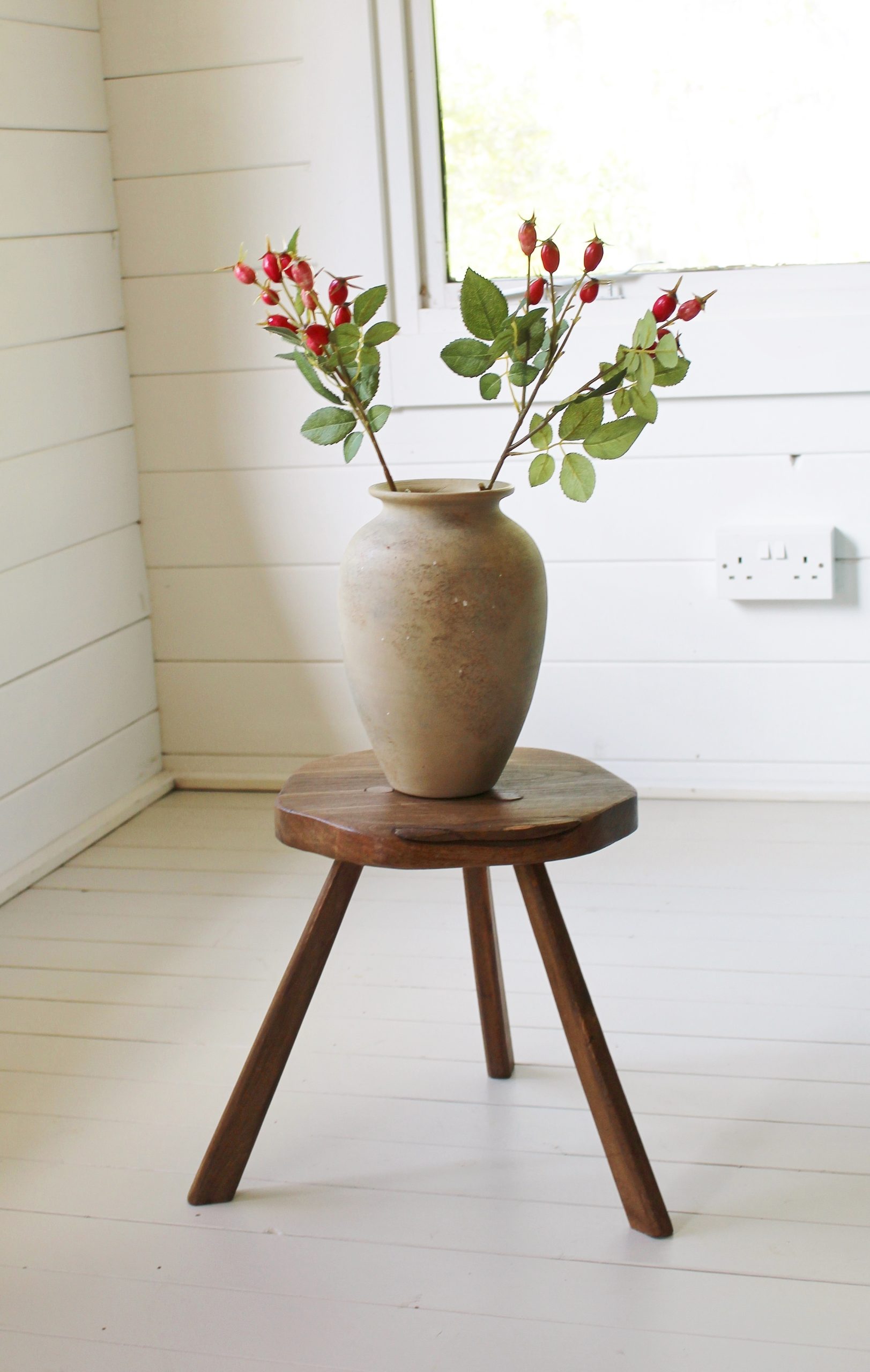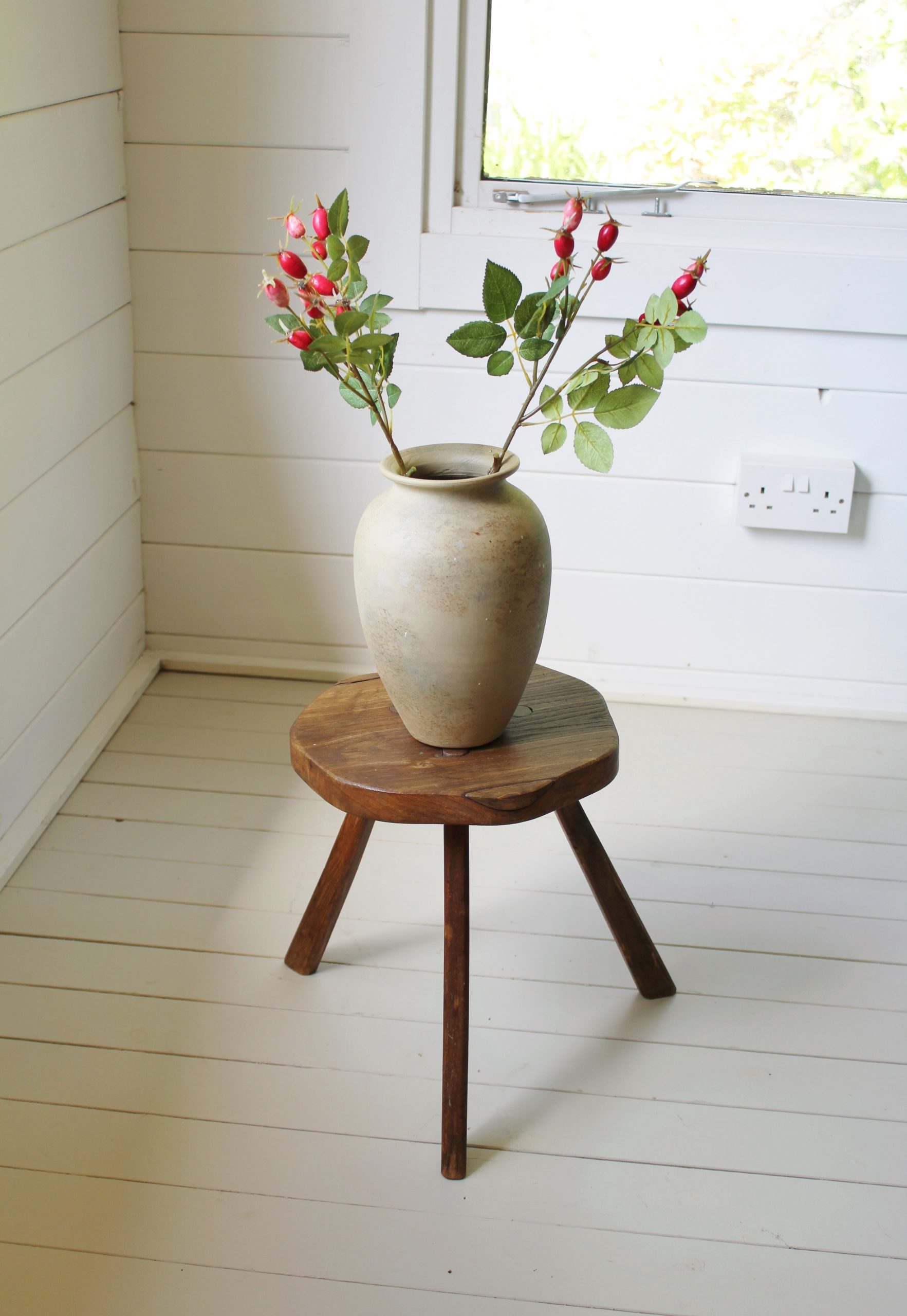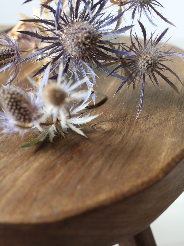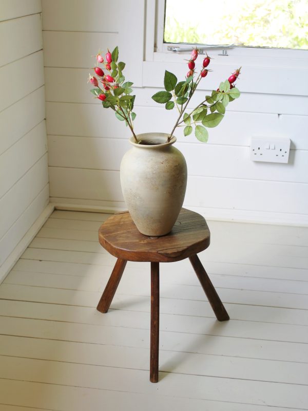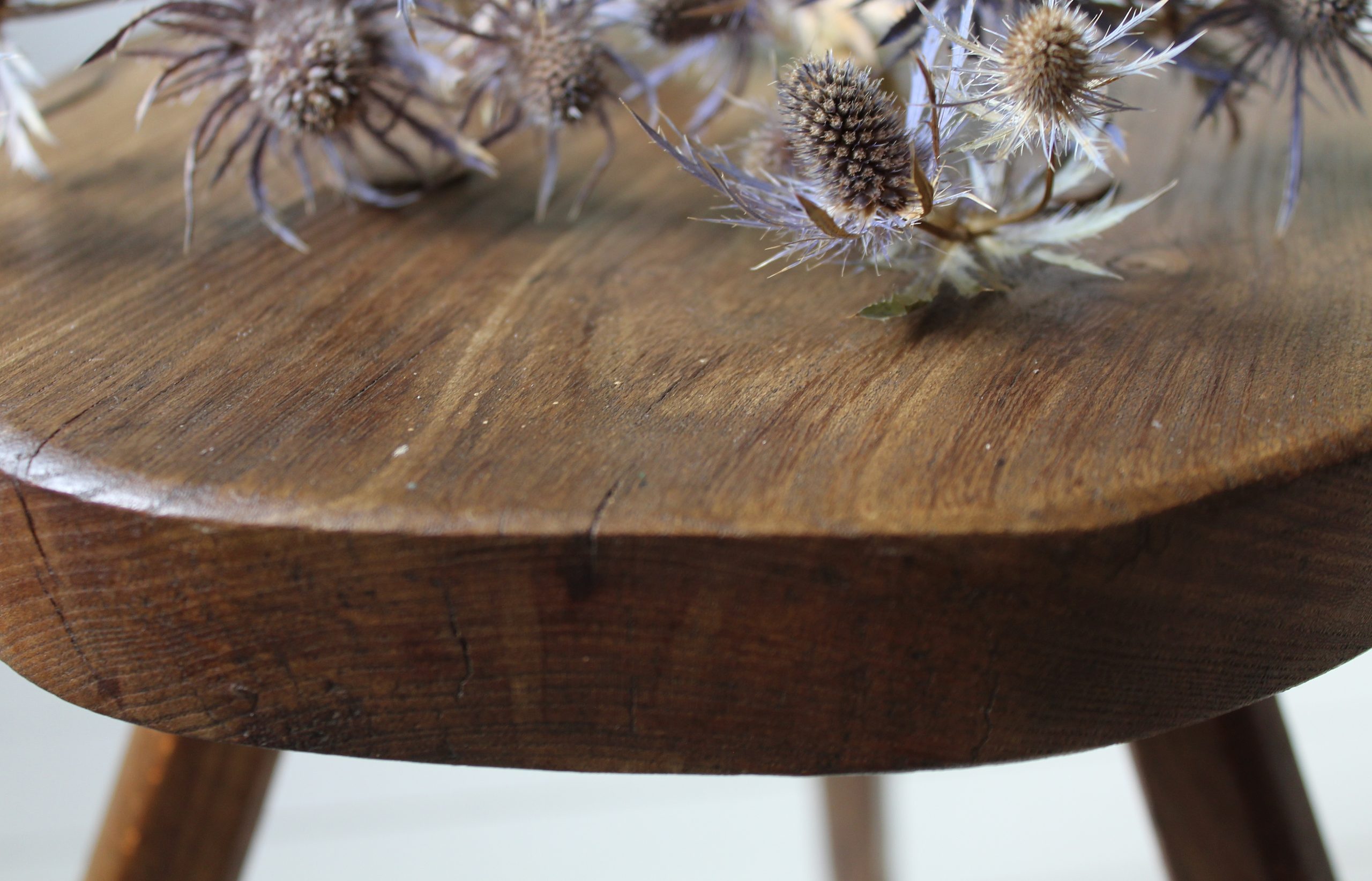 EARLY ANTIQUE PRIMITIVE ENGLISH WALNUT 3 LEGGED STOOL