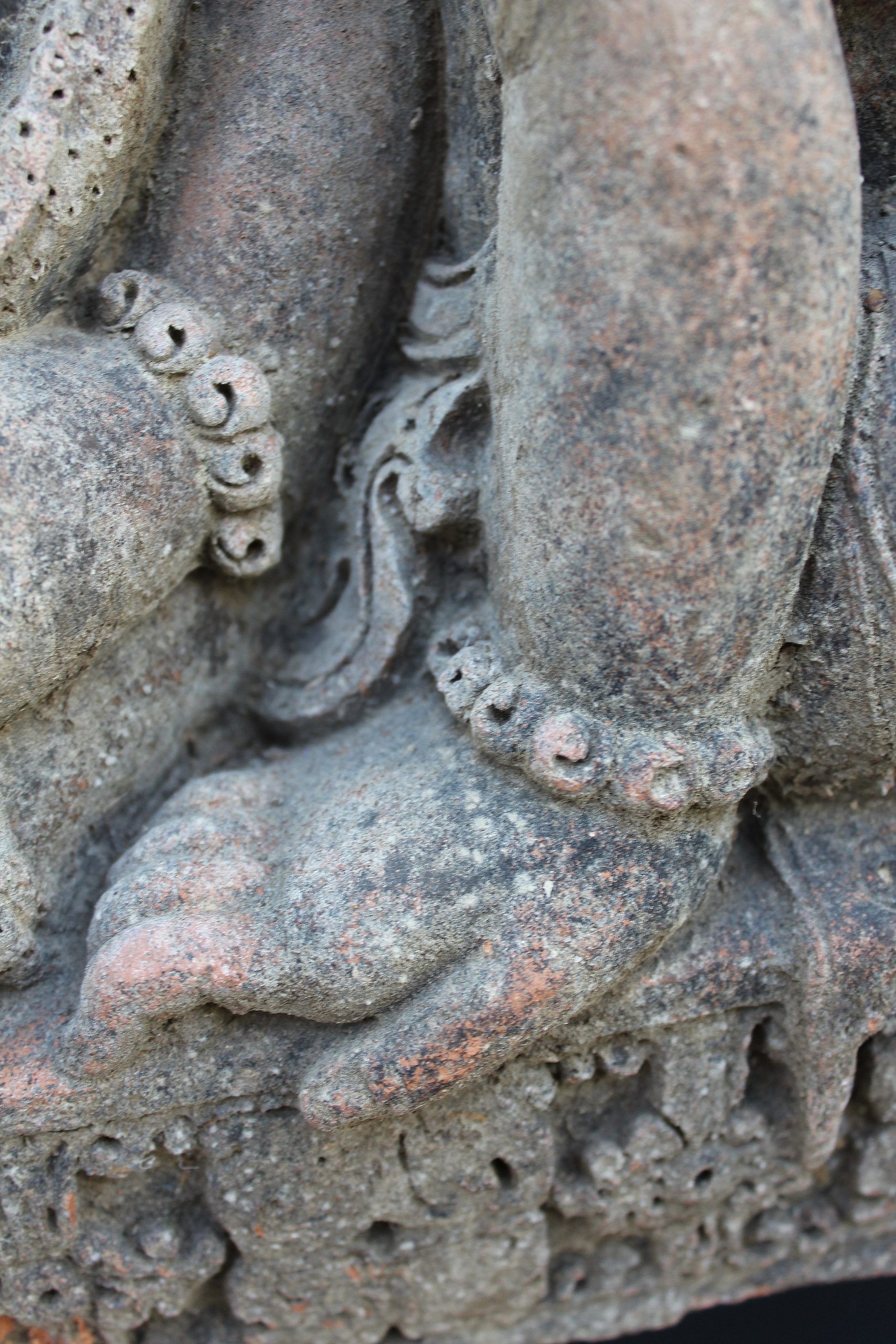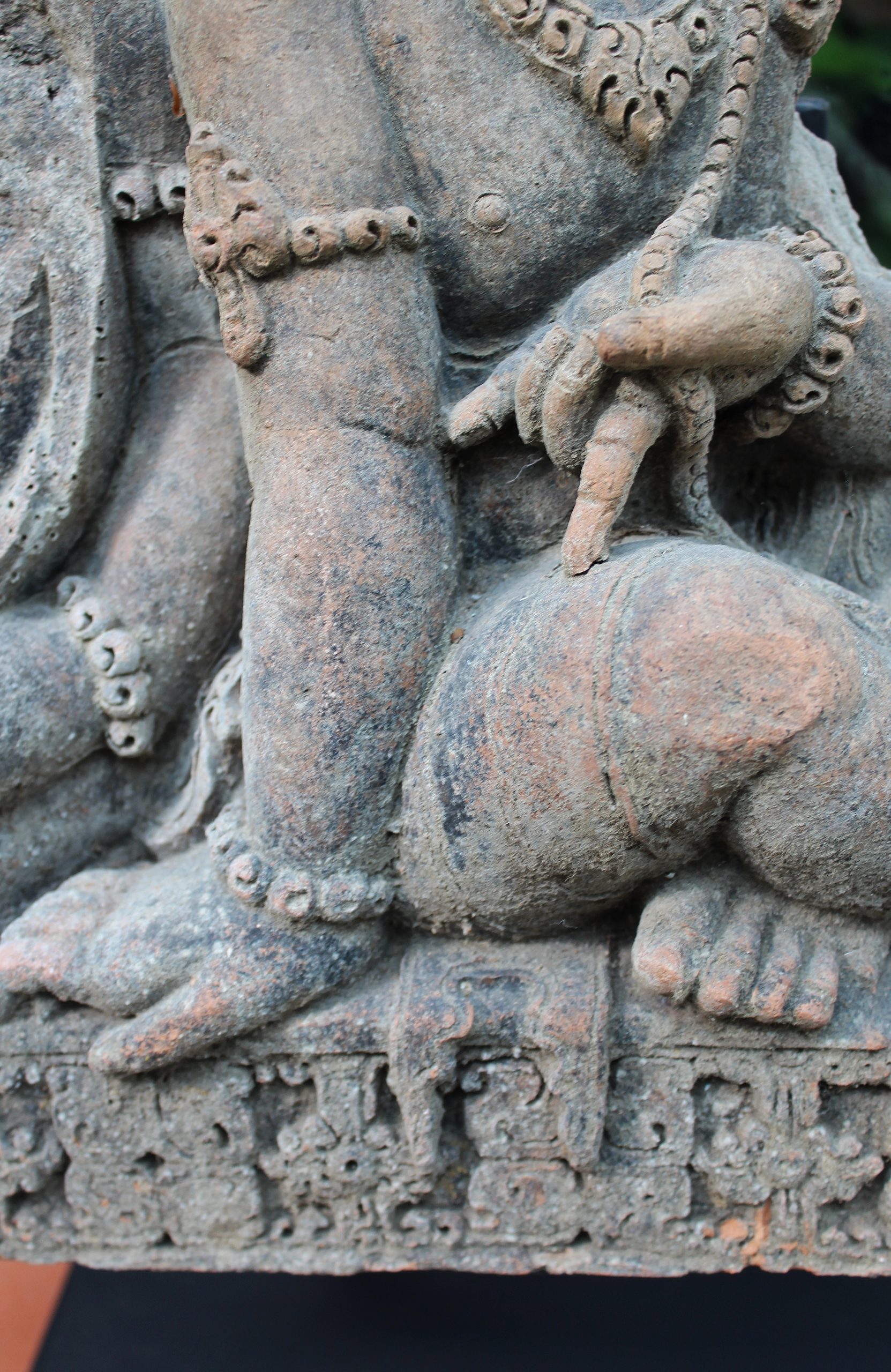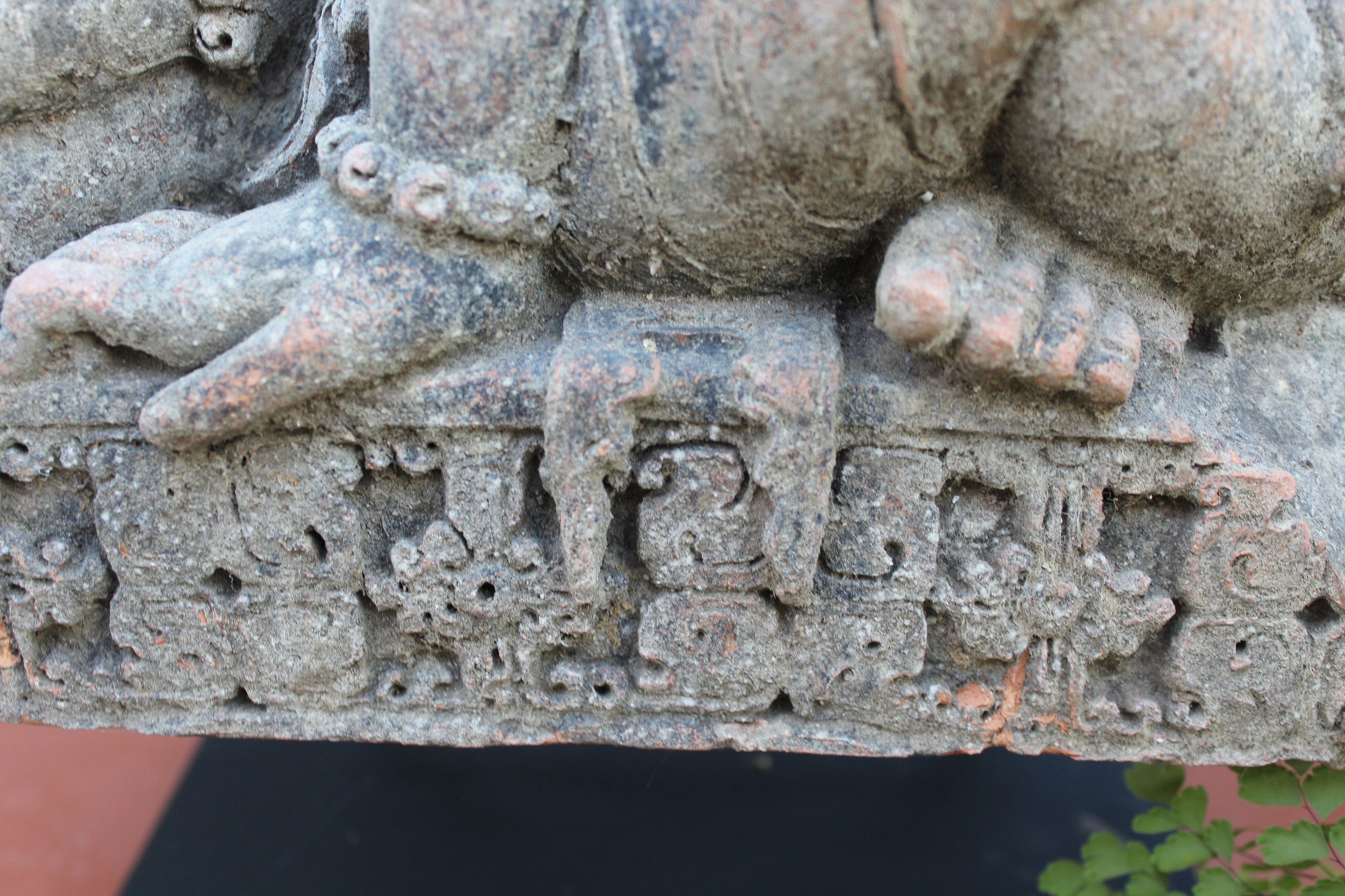 THIS FASCINATING TERRACOTTA RELIEF MOULDING REALLY IS QUITE EXQUISITE. DEPICTING A GROUP OF BUDDHIST FIGURES YOU REALLY CAN’T STOP LOOKING AT IT. ALTHOUGH RENDERED INCOMPLETE THROUGHOUT IT’S JOURNEY IN LIFE, IT DOESN’T RETRACT FROM THE OVERALL BEAUTY AND VALUE OF THE MOULDING. THE DETAIL IN THE HANDS, FEET, JEWELLERY AND HEADDRESSES IS SIMPLY BREATHTAKING.