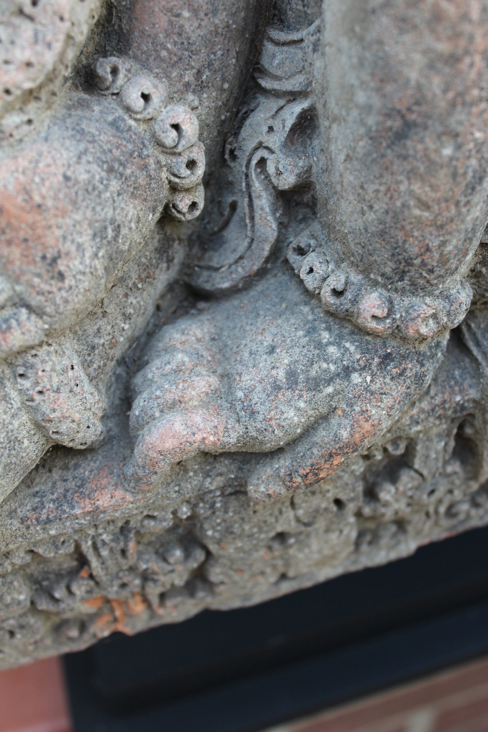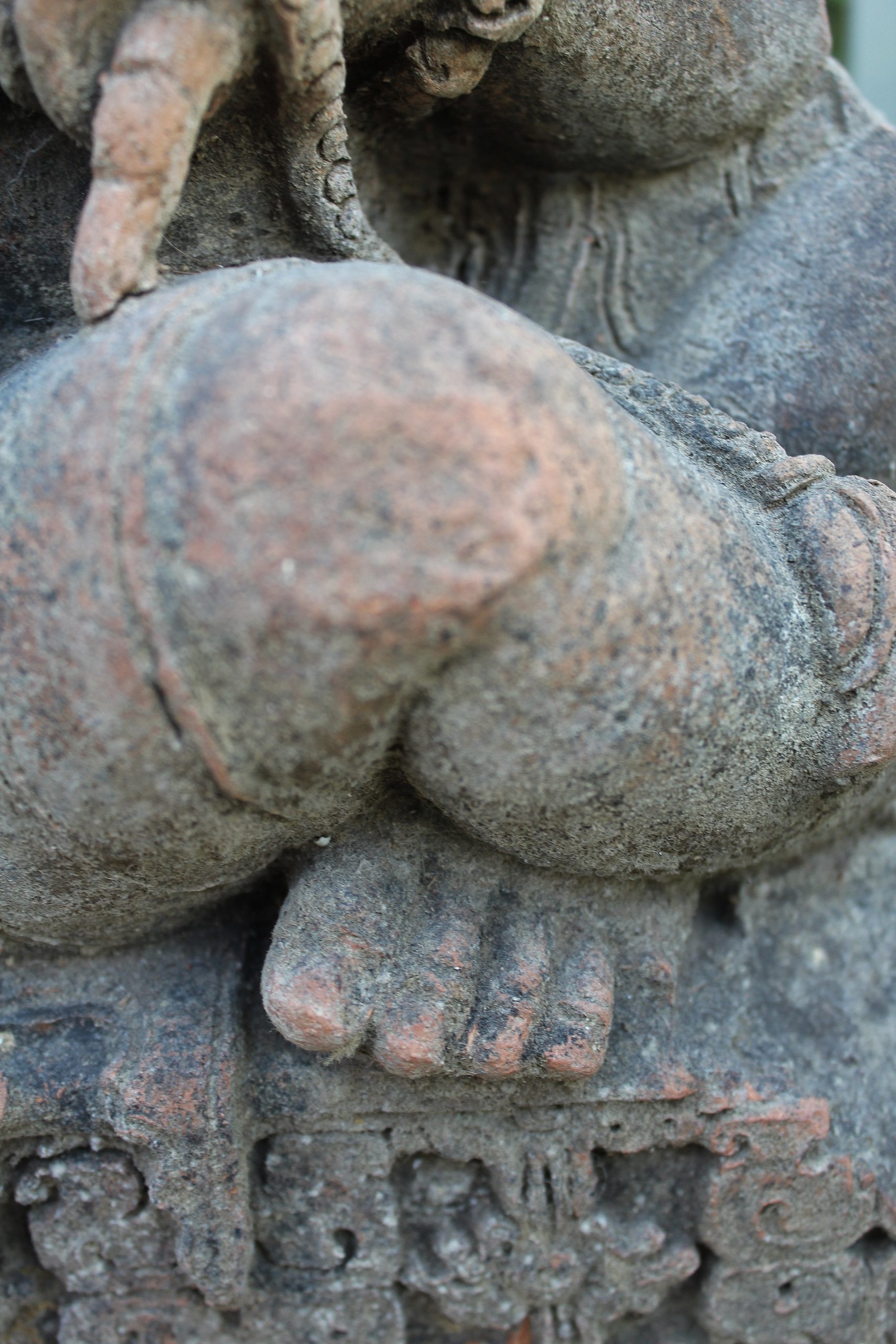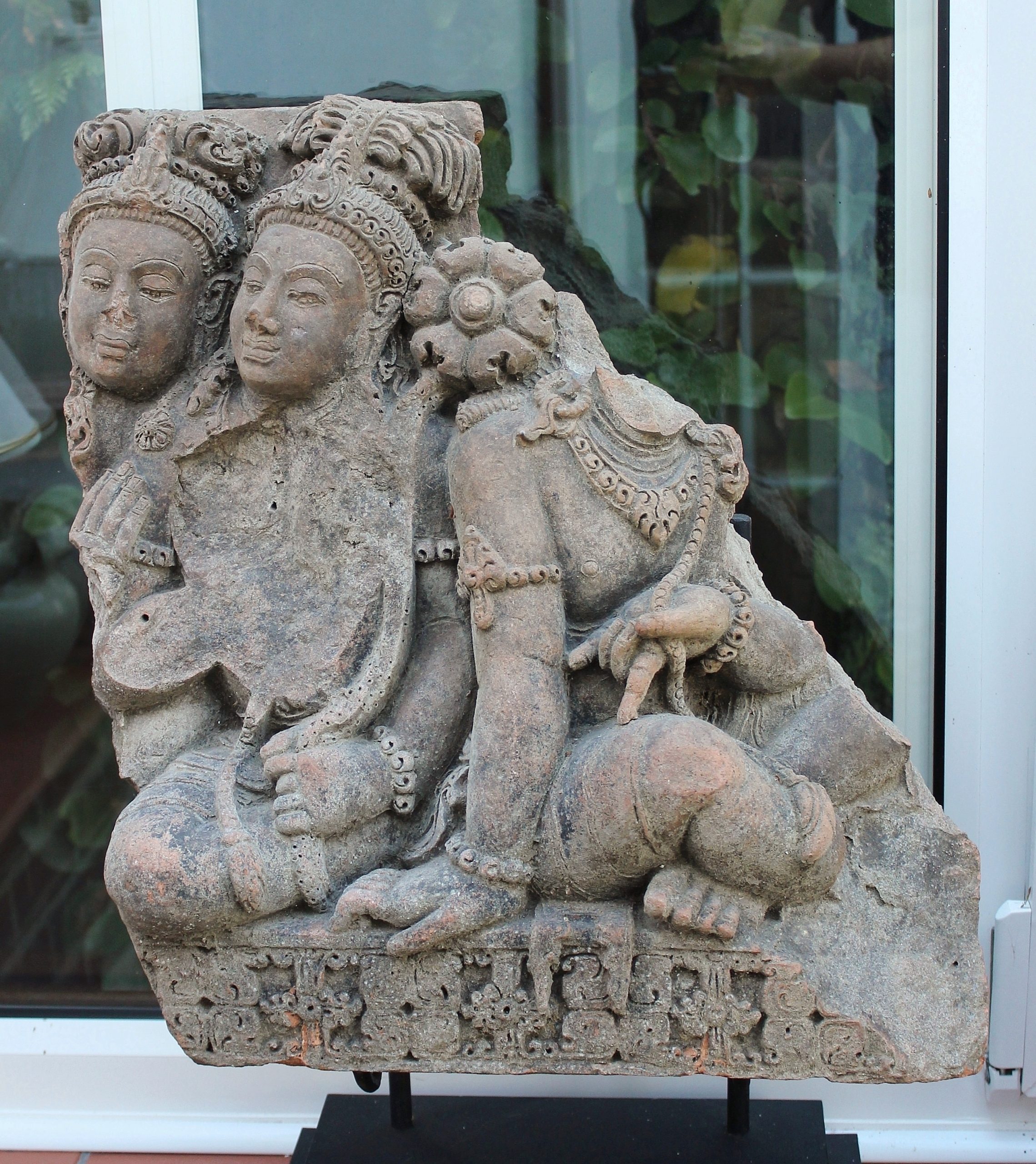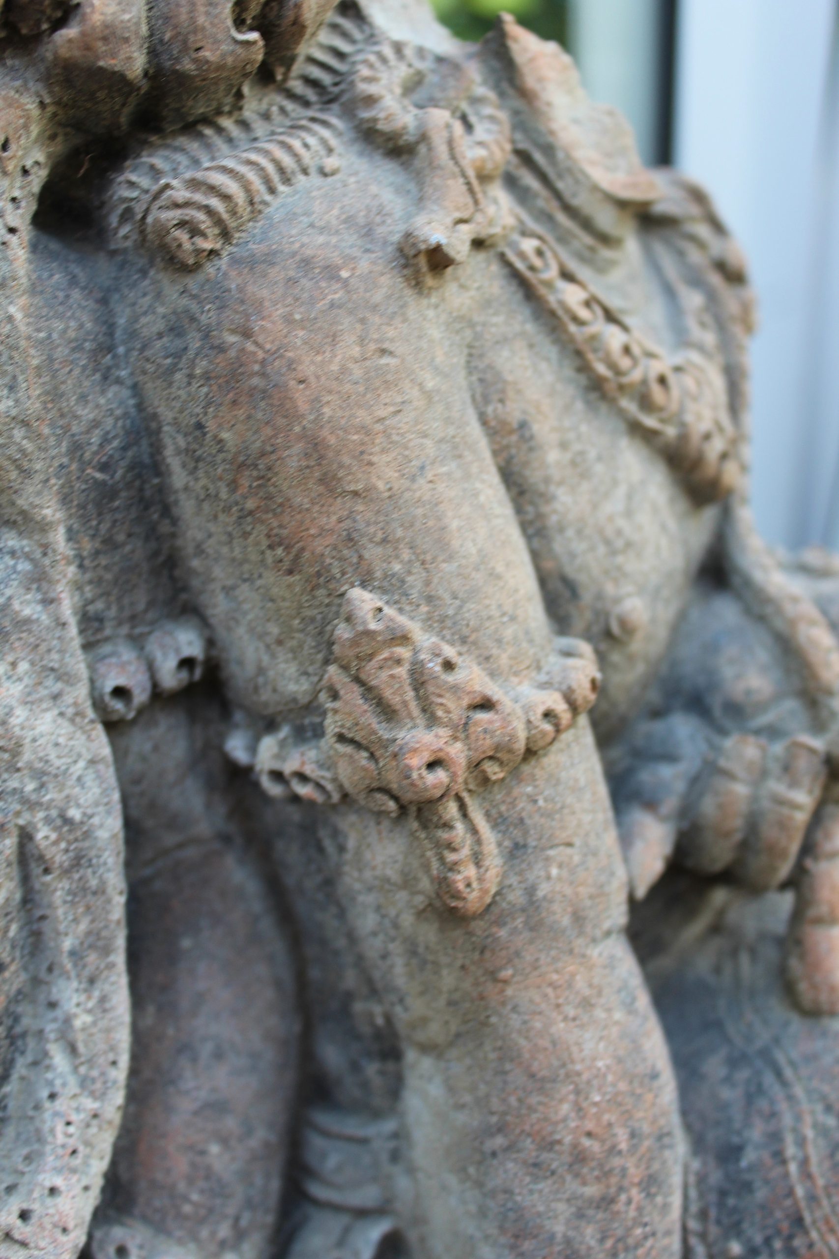 THIS FASCINATING TERRACOTTA RELIEF MOULDING REALLY IS QUITE EXQUISITE. DEPICTING A GROUP OF BUDDHIST FIGURES YOU REALLY CAN’T STOP LOOKING AT IT. ALTHOUGH RENDERED INCOMPLETE THROUGHOUT IT’S JOURNEY IN LIFE, IT DOESN’T RETRACT FROM THE OVERALL BEAUTY AND VALUE OF THE MOULDING. THE DETAIL IN THE HANDS, FEET, JEWELLERY AND HEADDRESSES IS SIMPLY BREATHTAKING.
